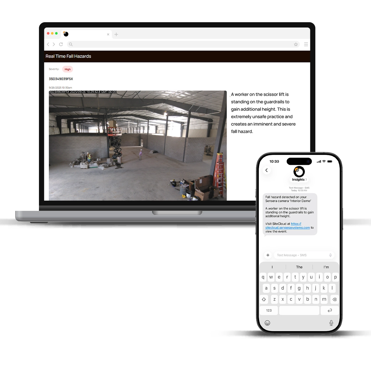 - You will be provided concise AI-driven summaries on site security events and safety concerns, including real-time fall hazard alerts via text and email. Video or still imagery is provided for validation and documentation.